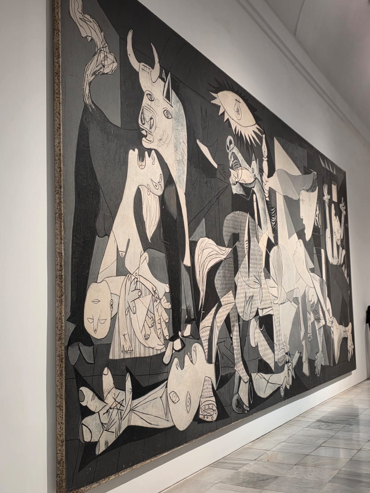 A poucos minutos dali, o Museu Reina Sofía abriga um dos quadros mais impactantes do século XX: Guernica, de Picasso. A obra, que denuncia os horrores da guerra, é o grande destaque de um acervo dedicado à arte moderna e contemporânea. Ambos os museus oferecem horários gratuitos, uma excelente forma de otimizar o orçamento sem abrir mão de cultura. Recomendo sempre conferir os horários atualizados nos sites oficiais, mas nossa experiência utilizando os horários gratuitos foi supertranquila — com tempo de espera curto e acesso fácil às salas principais.